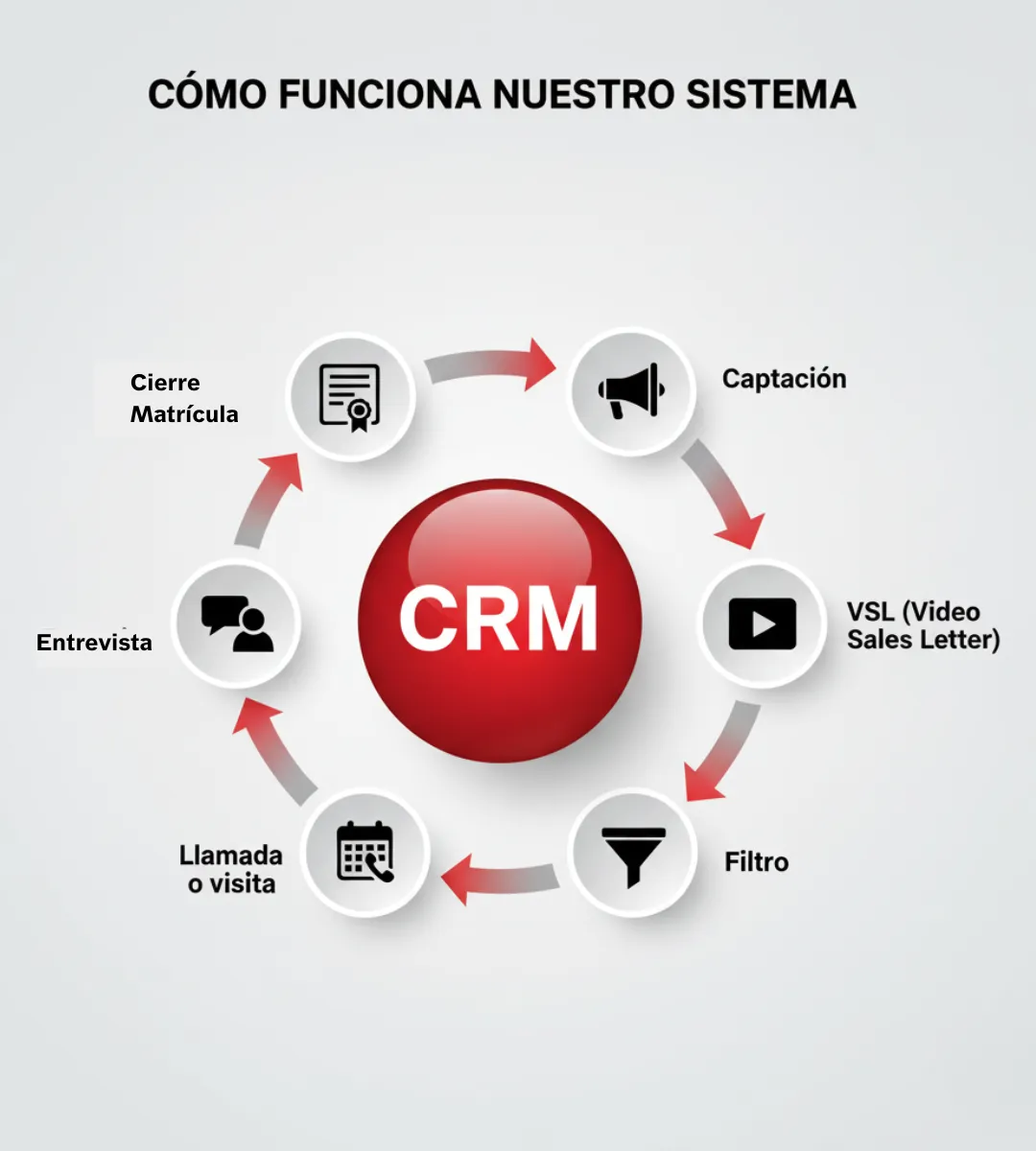 Nuestro sistema está diseñado para atraer, conectar y convertir familias interesadas en estudiantes matriculados, optimizando cada etapa del proceso de captación.
